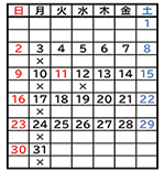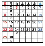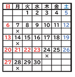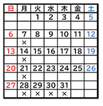 ※ カレンダーの×印は休館日です。 |