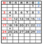 ※ カレンダーの×印は