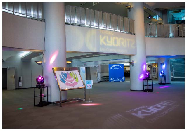 ロビーを照明と会社のロゴで彩りました!