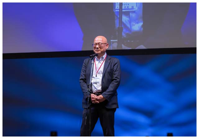 岸浪行雄社長が挨拶を行った。「震災、そしてコロナ禍を乗り越えて今があるのも社員一人ひとりを支えて下さったご家族の皆様のおかげだと私は思っています。